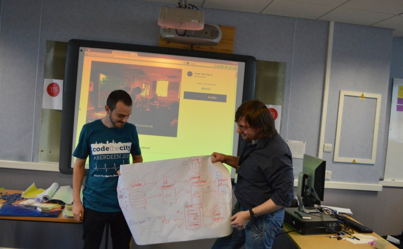 They’re taking two tables of data about community organisations and merging and exporting those from a closed source, processing and cleaning the data, then uploading it as both Open Data and to a mapping site.
