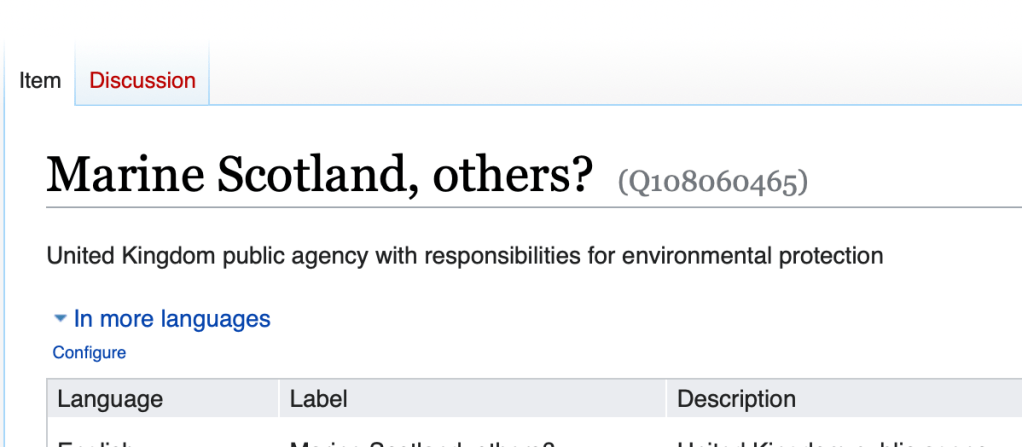 At the time of writing we have three Wikidata items for Marine Scotland. That is three items with their own QID each of which claims to be for the same entity.
